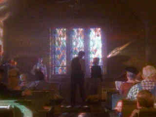 En esta fotografía mas reciente, tomada dentro de una iglesia en lo que parece ser una ceremonia matrimonial, el video capturo una extraña luz. Parece ser un rayo luminoso en forma de flecha apuntando en la dirección de la mujer. La configuración de la luz es demasiado extraña para haber sido causada por un reflejo de la lente de la video cámara. Algunos dicen que la imagen es tridimensional y que tiene la forma de una cara.